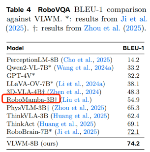 近日,图灵奖得主杨立昆(Yann LeCun)在社交平台上公开关注并引用了一篇引发行业热议的论文,该论文提出了一种名为 Vision Language World Model (VLWM) 的全新基础模型,并在对比实验中将中国创业公司智平方(AI²Robotics)的大模型RoboMamba作为核心基线(baseline)之一。这一举动迅速在学术与产业界引发关注,也被视为国际顶级学者对中国技术实力的高度认可。