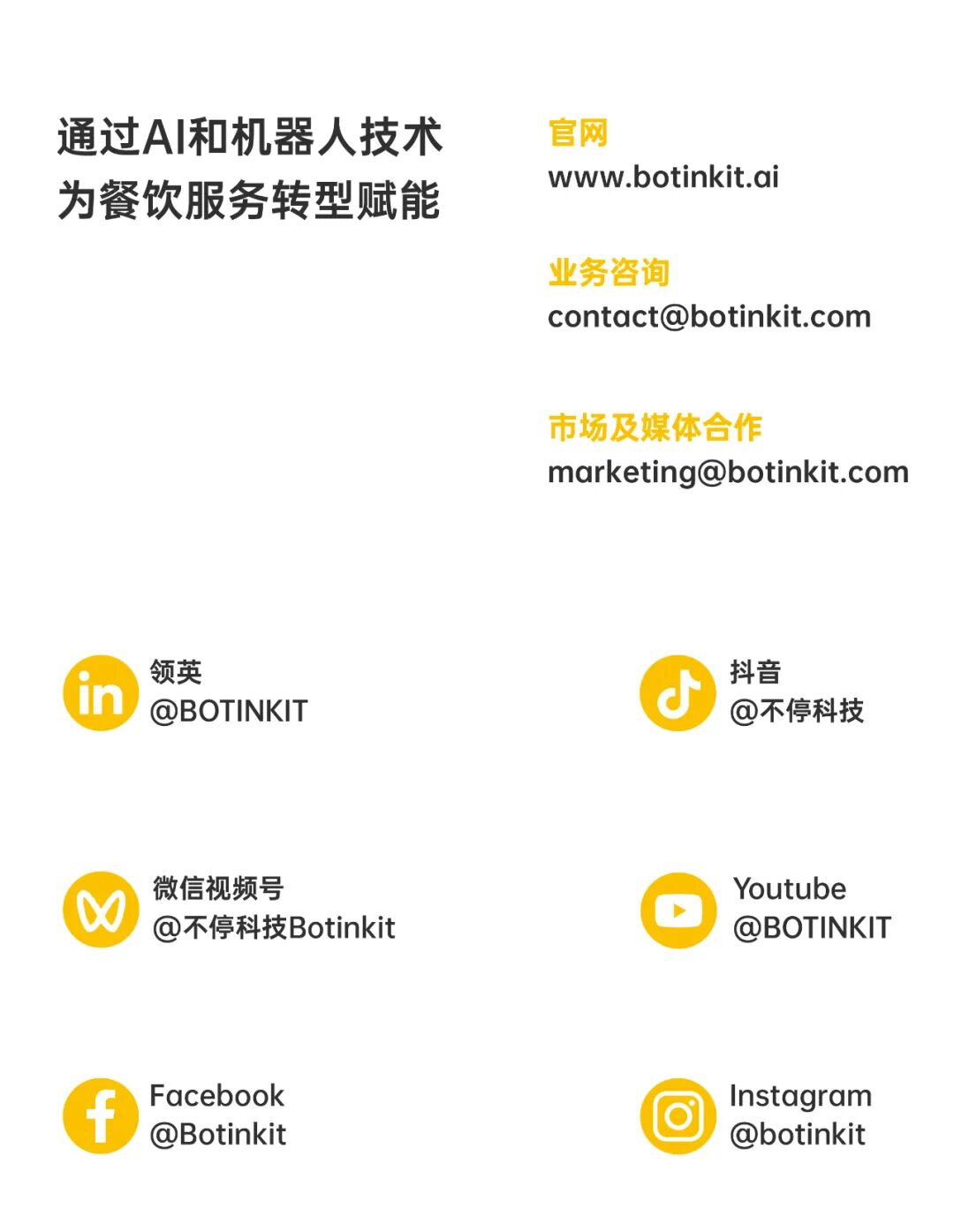 面向未来,不停科技将继续加大技术研发力度,拓展国际市场版图,携手全球合作伙伴推动智慧厨房从单点应用走向全链路协同,通过AI和机器人技术为餐饮服务转型赋能,助力全球餐饮行业实现高效、健康、可持续的全面升级。