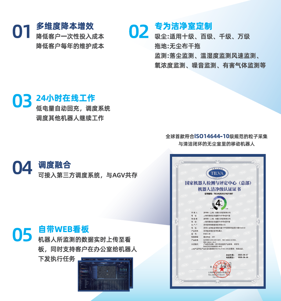 洁净室行业作为高端制造与科研的 “基石设施”,其发展节奏与半导体、生物医药、新能源等战略产业的升级深度绑定。从市场扩张到技术革新,从应用深化到区域布局,行业正经历从 “空间建造” 到 “智能生态” 的范式转变。 市场扩张:多点驱动 数据显示,全球洁净室系统集成市场正稳步扩容,预计 2024 年至 2031 年将从 1233.5 亿美元增长至 1687.4 亿美元,年复合增长率(CAGR)达 4.7%,这其中增长主要由「半导体」、「生物医药」、「光伏与量子计算等新兴场景」这三大核心领域共同拉动: *数据来源于洁净室市场调研报告 迭代方向:智慧化全域感知 基于ISO 14644-18:2022新标准,洁净室正通过传感器网络与 AI 算法实现颗粒物、温湿度的实时动态监测,这其中尤其以智慧化机器人为重中之重。00:38 在洁净室的核心指标 ——粒子浓度控制中,传统依赖固定传感器阵列或人工巡检的模式已难以满足高等级洁净环境的动态管理需求。因此,洁净室环境监测洁净机器人的引入将是精准控制、风险预警与合规性保障的刚性需求,其必要性体现在以下核心维度: 01 突破固定监测的空间盲区,实现全域无死角覆盖; 02 实时动态响应,缩短污染溯源时间; 03 减少人工介入,降低二次污染风险; 04 适配动态生产场景,支撑高端制造; 05 强化合规性与数据追溯能力。 机器人将是洁净室 的“标配” 派特纳作为一家创新型机器人企业,立志于为客户打造卓越的机器人全链服务,在4年的发展时间里面,成功实现了「石材养护」、「工业无尘」两条产品线的市场领先布局。 其中,「工业无尘」的洁净室环境监测清洁PAICU系列机器人,是全球首款符合ISO14644-10级规范的粒子采集与清洁闭环的洁净室内移动机器人。 在洁净室的空间内,用科技的力量代替传统人工的作业模式,自动回桩充电,实现24小时在线,避免人员进出的污染。在半导体生产线上,更有助于提高产品良率,助力半导体生产向着更优质的方向发展。 以机器人实现全自动风速、落尘、氧浓度、温湿度、有害气体、噪音等关键指标的环境实时监测,并完成洁净室全自动吸尘清洁作业,实现洁净“智慧化”作业。 智胜未来 在当下广泛的机器人应用里,机器人作为新质生产力的佼佼者,正在悄然改变许多行业的管理和生产模式。它代表了技术的进步,更是思维方式的革新。 相信在未来,随着机器人的技术的不断迭代,「以数字化技术重构核心竞争力,以创新驱动力构筑美好的未来」终将实现。 -END- 派特纳智能科技(Partner Robotics Technology, 全称苏州派特纳智能科技有限公司)成立于2021年6月,是一家专注于一站式商用智能清洁服务方案的研发及应用的科技创新型企业,本着“尊重、团结、诚信、创新”的价值观,以商用清洁机器人为切入点,逐步向全系列服务型机器人延展。 视频号 派特纳