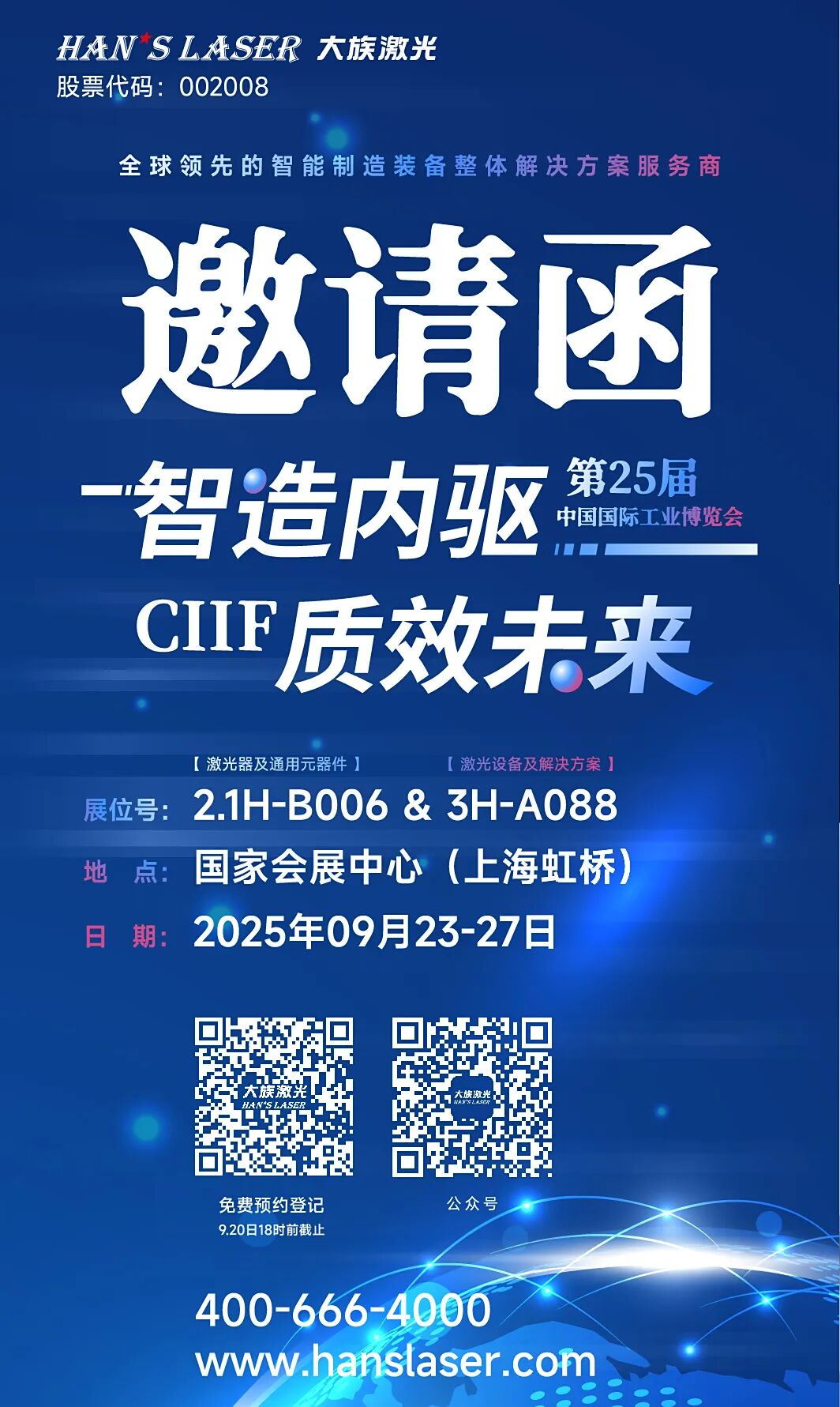 在激光技术的前沿探索中,大族激光始终致力于突破与创新,不断推动激光科研与产业的深度融合。此次2025中国工博会,大族激光特定展会主题“智造内驱,质效未来”,即将亮相数控机床与金属加工展展区2.1H-B006 & 3H-A088,为观众展示公司深厚的技术实力和创新魅力。