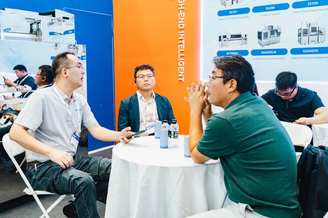 今年,铭赛科技重点展示了面向面板级、晶圆级与系统级封装(PLP/WLP/SiP)的高精度点胶与贴装系统。其中,SS300面板级点胶系统集成自动上下料与点胶多项功能,支持RDL First FoPLP制程中的Underfill工艺,具备Panel预热、抗翘曲、胶形AOI检测等先进功能,兼容PGV/AGV/OHT等多种自动化接口,响应半导体制造信息化与无人化趋势,吸引众多专业观众驻足问询。