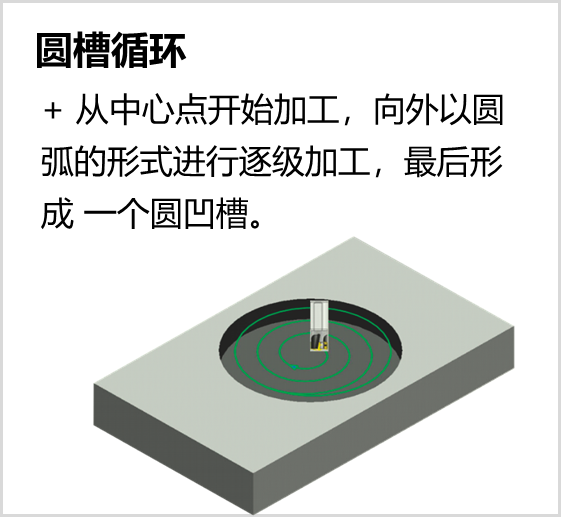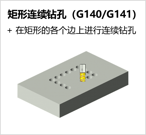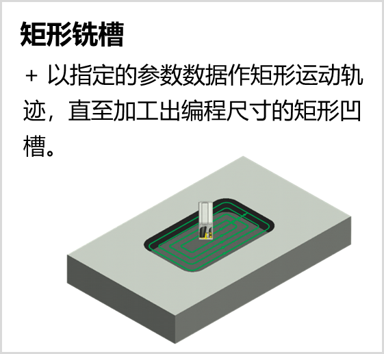 系统提供多种固定循环和复合循环指令以简化编程,通过这些指令可实现钻孔/镗孔、圆凹槽/矩形凹槽粗铣、全圆/矩形精铣、直线/矩形/弧形连续钻孔等加工操作。