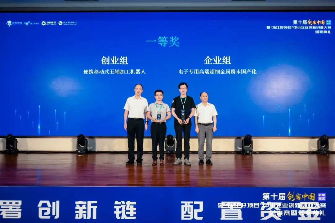 2025年8月6日,第十届“创客中国”暨“浙江好项目”中小企业创新创业大赛杭州赛区总决赛在萧山区圆满落幕。清琢智能科技(浙江)有限公司凭借“便携移动式五轴加工机器人”项目在大赛中脱颖而出,荣获创业组一等奖!