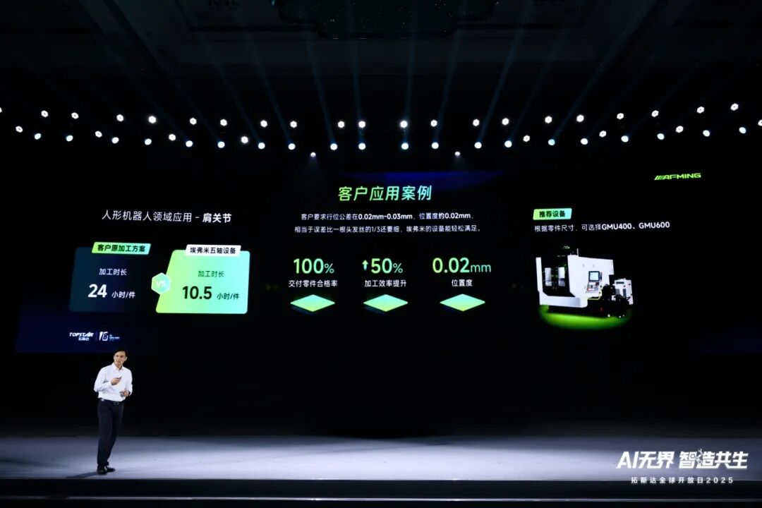 9月12日,“AI无界 智造共生——拓斯达全球开放日2025”在东莞圆满落幕。时隔多年再度面向全球客户与合作伙伴开放,通过双基地实景展示、新品发布、圆桌对话及生态签约等形式,全面呈现拓斯达在工业AI与智能制造领域的前沿技术突破与产业融合实践。 左右滑动查看高清图片 本次活动汇聚超一千位业界精英,包括海内外客户代表、国内人工智能大模型头部企业、全球科技制造巨头、智能设备外观结构领域的领军企业,以及多家国家重点布局建设的综合类国家技术创新中心代表;搭建了“开放、协同、共生”的高端交流平台,更全面展示拓斯达从核心零部件、高端装备到智能工厂解决方案的全栈闭环能力,为推动构建“智造共生”行业新生态注入强劲动力。 聚焦“小 大 新”,深化全球布局 Part.1 拓斯达董事长吴丰礼分享了公司十八年来围绕塑料和金属两大基础材料实现业务成长的核心逻辑与演进路径。通过清晰的战略蓝图,他阐释了拓斯达如何以“全心全意为客户服务”为价值观,持续深耕工艺问题解决、标准化产品组合、核心零部件研发及组织流程优化,构建可复制的解决方案,并依托坚实的组织能力推动企业稳健发展。 与此同时,董事长吴丰礼现场阐述公司未来发展方向——持续巩固和拓展主营业务、重点发力高端智能装备,推动人工智能技术在制造业场景落地。未来,拓斯达的人形机器人将通过工艺与场景的深度融合,精准破解实际应用难题,最终构建起可持续的商业闭环。 在海外布局方面,拓斯达副总裁姜向前分享通过提供贴身服务和确保极速交付的案例,成功在全球范围内建立起稳固的客户基础和供应链网络。截至目前,拓斯达业务已覆盖全球50多个国家和地区。 人形机器人首发,构建全栈闭环生态 Part.2 从国内深耕到全球布局,从技术创新到产品落地,公司持续推动AI与制造业从硬件、软件到系统层面的“无界融合”。 最新——矩阵智拓首席执行官黄晶面向全球正式发布首款人形机器人——小拓。这也是第一台在注塑行业落地应用的人形机器人,标志着人形机器人在工业场景的应用迈出关键一步。 “小拓”基于拓斯达与智谱共同构建的具身模型,可实现对复杂任务的自主推理与决策。依托对15000家工业客户的场景理解与技术积累,“小拓”已在注塑车间完成多轮验证。通过集成3D相机与AI视觉检测系统,它能够实时识别注塑件良率,并自主完成装盘等工序,实现从检测到操作的全流程自动化。 最精——人形机器人的制造过程本身也体现了高端装备的技术集成。其核心部件采用埃弗米DMU400五轴联动数控机床加工,凭借自研主轴和GTRT齿轮驱动摇篮转台技术,实现了高于头发丝三分之一精度的高刚性切削,为机器人提供可靠的“钢筋铁骨”。 最硬核——拓斯达在伺服控制等关键技术领域取得重大突破。公司首席伺服技术专家、中国科学院沈阳计算所博士王志成现场分享了机械末端抖动抑制控制技术的创新应用,并已成功应用于人形机器人“小拓”。该技术突破不仅展现了公司在高端伺服领域的硬实力,更为人形机器人规模化部署提供关键技术支撑。 最丰富——作为拓斯达发展初期的核心业务,从注塑辅机起步,逐步拓展至电动机,现已构建起覆盖“从单机到整厂”的注塑全链条解决方案服务能力;累积近20年的经验和大量场景,服务超过15000家客户,覆盖3C、医疗、汽车、日化等多个领域,为拓斯达人形机器人的落地应用提供扎实的验证基础和丰富的拓展空间,有力支持人形机器人在工业场景中迈向规模化应用。 “小拓”的发布不仅展示了人形机器人在工业场景的应用潜力,也完整展现拓斯达“技术-制造-产品-场景”于一体的闭环生态能力。 携手生态伙伴 推动多元场景规模化落地 Part.3 在探讨AI如何真正成为制造业的“新质生产力”这一议题时,粤港澳大湾区国家技术创新中心AI首席科学家庄瑞炎博士在《中国制造“大未来”——AI重塑制造,赋能新质生产力》分享中指出,AI已成为产线上实实在在的“新质生产力”,正推动中国制造向高效、高质、智能方向跃升。 面对AI技术的迅猛发展,制造业应如何把握机遇实现跨越?拓斯达与粤港澳大湾区国家技术创新中心、富士康科技集团等权威机构和行业领袖围绕该议题展开圆桌对话。 此外,联合多家科研机构、高校及行业头部企业共同发起“拓斯达人形机器人生态创新联盟”,整合产、学、研、企多方资源,加速人形机器人在多元场景中的规模化落地与创新应用。 通过前沿布局、生态合作与全球视野,拓斯达正深度参与全球制造业智能化转型进程。 TOPSTAR 拓斯达坚持“让工业制造更美好”的企业使命,秉承“成为全球领先的智能装备服务商”的愿景,通过以工业机器人、五轴联动数控机床、注塑机为核心的智能装备,以及控制、伺服、视觉三大核心技术,打造以人工智能驱动的智能硬件平台,为制造企业提供智能工厂整体解决方案。 -END-