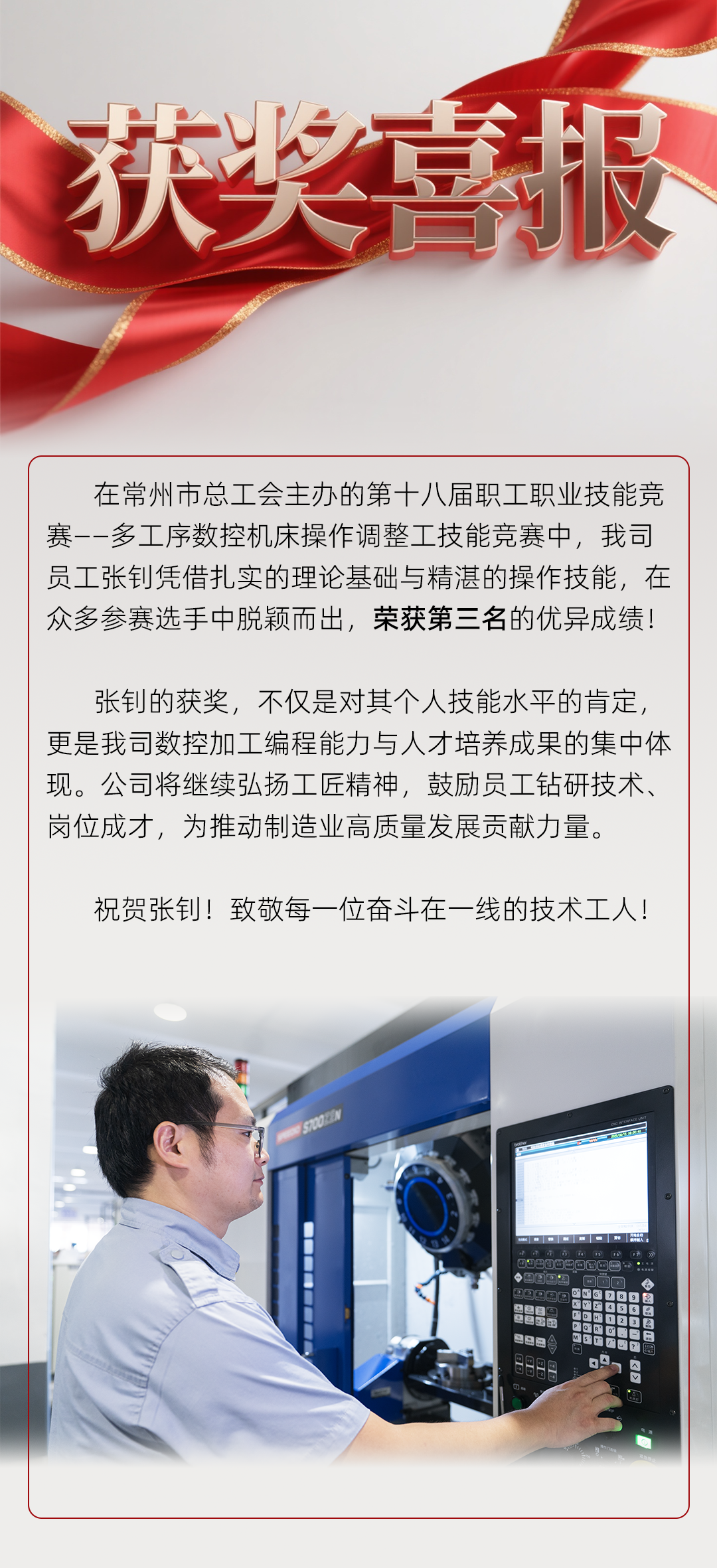 喜报!我司员工张钊在全市数控技能竞赛中荣获第三名!