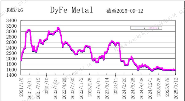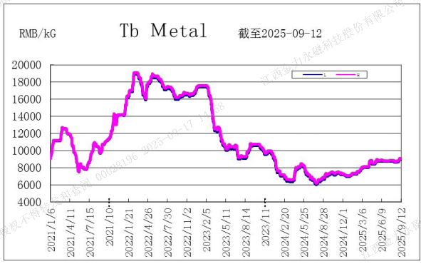 For heavy rare earths: DyFe prices remained stable. After rapid rises, Tb metal and oxide prices faced strong market resistance to high levels, leading to weaker purchasing activity and slight price corrections. Oxide prices settled at 7150-7200RMB/KG.