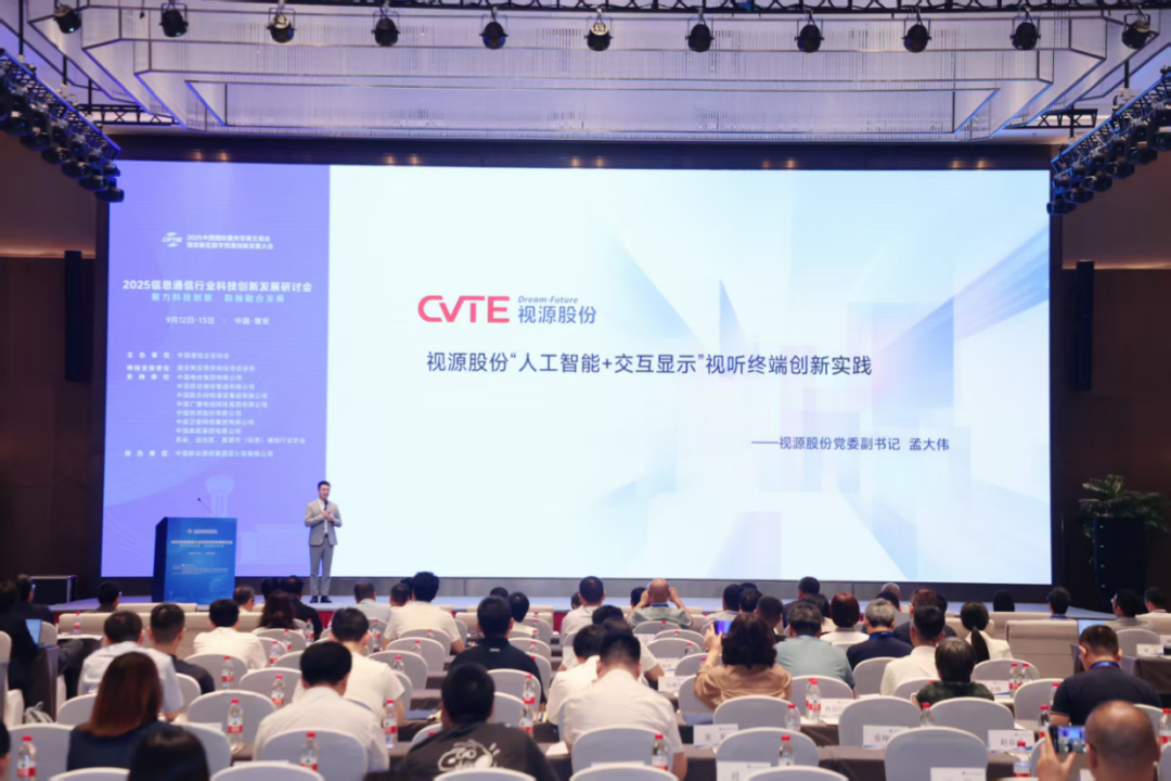 9月12日至13日,由中国通信企业协会主办的2025信息通信行业科技创新发展研讨会在雄安新区成功举办,广州视源电子科技股份有限公司党委副书记孟大伟受邀出席会议,以《视源股份“人工智能+交互显示”视听终端创新实践》为题进行主旨演讲,重点分享了视源股份在人工智能、大数据等前沿技术领域持续投入,取得的大量应用成果。