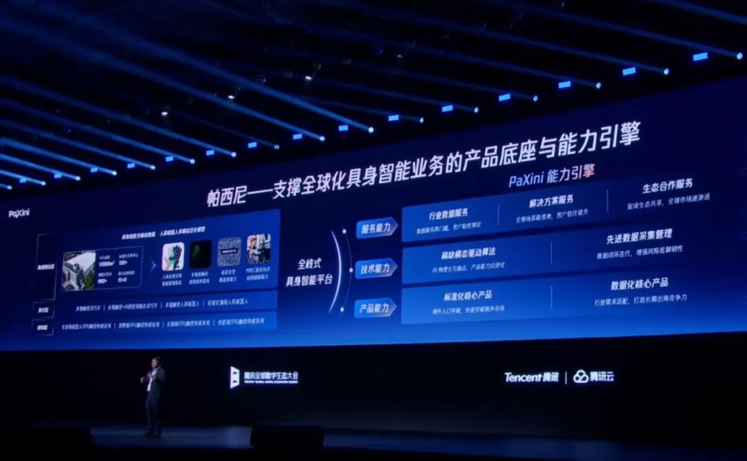 作为具身智能领域的领军企业,及腾讯在具身智能领域的重要合作伙伴,帕西尼受邀深度参与本届大会,并通过主题演讲、创新成果亮相及生态合作探讨,全面展现了其在全球具身智能领域的技术领先性与全栈生态布局能力。