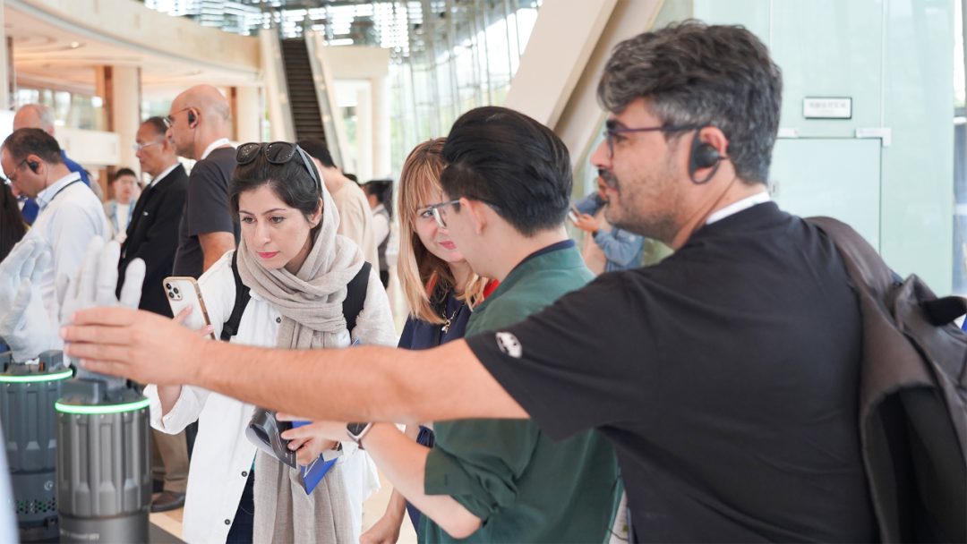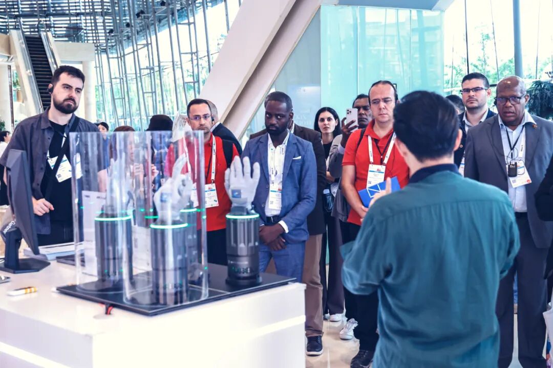 现场展示中,应手Y-Hand M1的执行流畅性吸引了众多国际嘉宾驻足互动。多位科技园区的负责人对应手Y-Hand M1领先的技术优势与稳定精准的性能表现给与了高度评价,并就技术细节、应用场景及合作可能性与团队进行了深入交流。