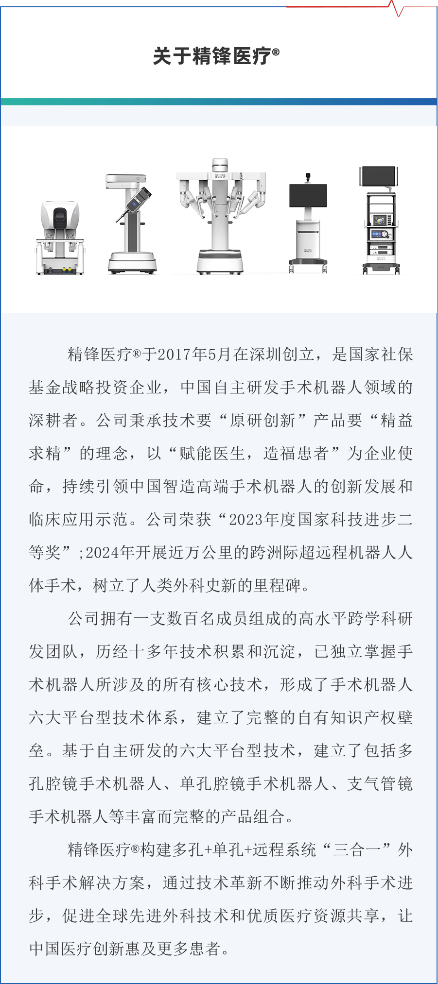 精锋医疗正在通过先进的远程手术技术,搭建一座连接全球不同城市、不同科室和不同世代专家的桥梁,重新定义外科手术的边界,让高质量医疗资源触手可及。Paweł Wisz博士在个人社交媒体分享道:'远程手术已不再只是未来的承诺,它已经成为改变我们治疗和教学方式的现实工具。'