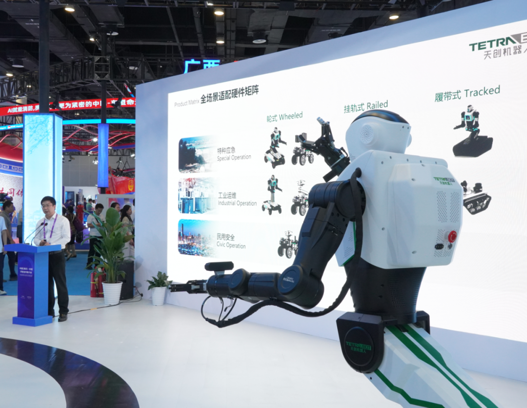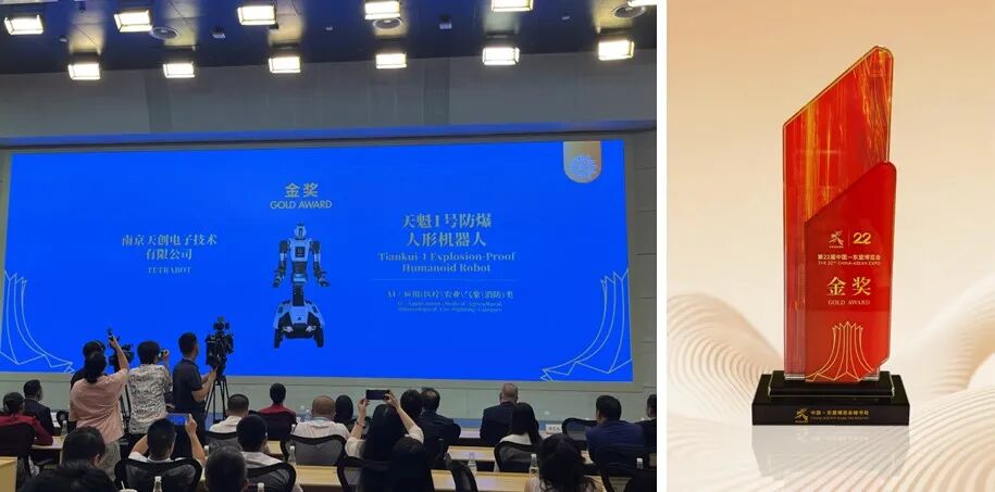 9月17-21日,第22届中国-东盟博览会在广西南宁盛大举办,天创机器人携行业领先的具身智能机器人产品应南京市商务局邀请参加展示。全球首款防爆人形机器人天魁、以及II类最高防爆等级认证的T9-W轮式机器人、移动充电机器人一经亮相,便吸引现场众多目光,备受关注。
