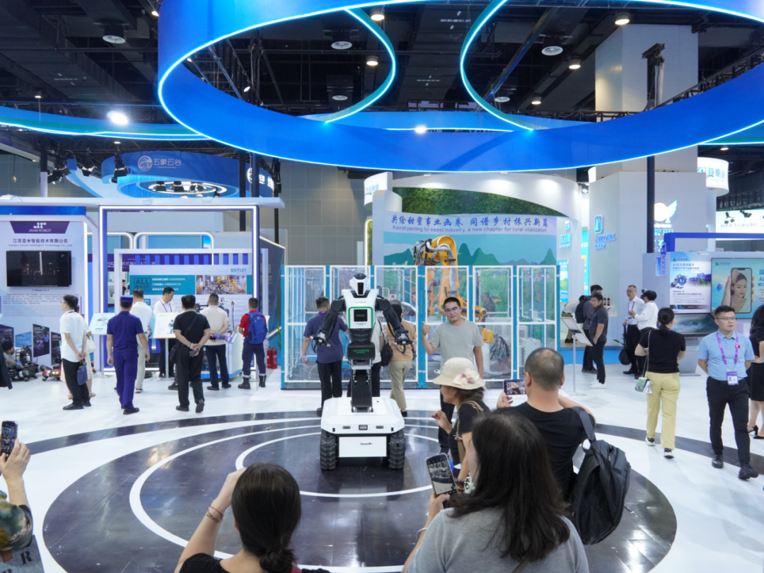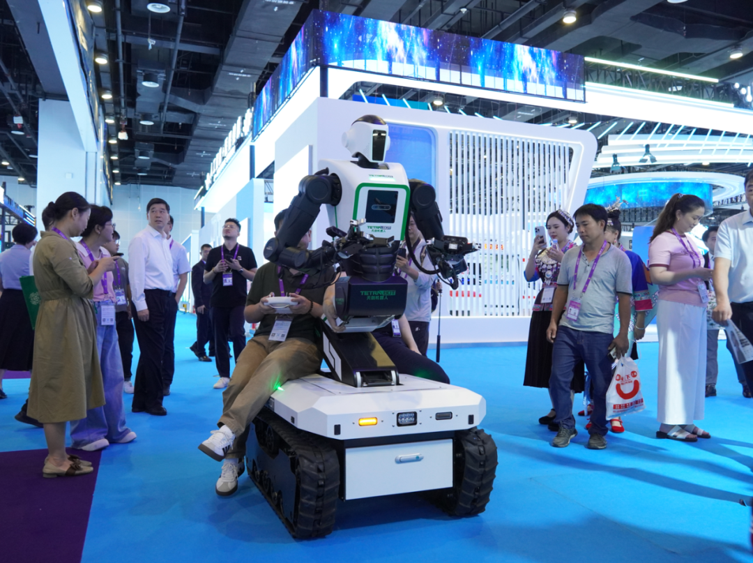 天魁1号防爆人形机器人现场凭借具身智能融合的先进科技力展现,荣获东博会展品评选活动金奖。