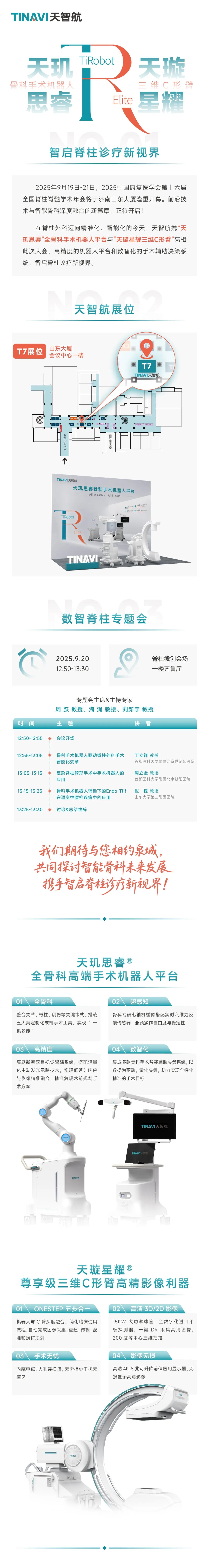 关于 天智航 ★ 北京天智航医疗科技股份有限公司(股票代码:688277;以下简称“天智航”)是一家专注从事骨科手术机器人及其相关技术自主创新、规模化生产、专业化营销及优质临床应用为一体的高新技术企业,也是国内第一家、全球第五家获得医疗机器人注册许可证的企业。2020年,天智航公司成功上市IPO科创板。 天智航作为中国医疗机器人开拓者,获得了300余项专利,是“国家机器人标准化总体组”成员单位,“医疗机器人国家地方联合工程研究中心”依托单位;是中国医学装备协会理事单位,中国生物医学工程学会医用机器人工程与临床应用分会副主任委员单位,中国机器人 TOP10峰会的成员企业,北京市生物医药产业跨越发展工程(G20 工程)创新引领企业,曾获2015 年国家科学技术进步奖二等奖等国家级和省部级的多项荣誉,拥有博士后科研工作站。 公司核心产品天玑骨科手术机器人创新实现了一机多适应证覆盖,包含颈椎、胸椎、腰椎、骶椎全节段脊柱外科手术和骨盆、髋臼、四肢等部位的创伤手术和关节置换手术。截至2025年第一季度末,天玑系列骨科机器人的临床应用已覆盖200余家医疗机构,31个省、自治区、直辖市,手术量突破11万例。