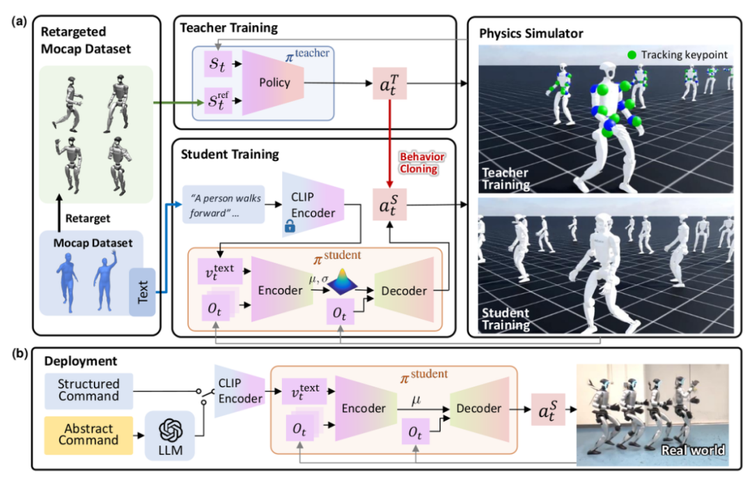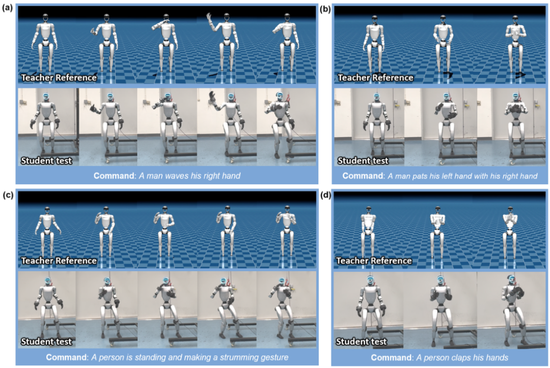 •实时性与泛化性:系统需适应未见过的语言指令,并支持动作间的平滑过渡(如从“行走”切换到“挥手”)。