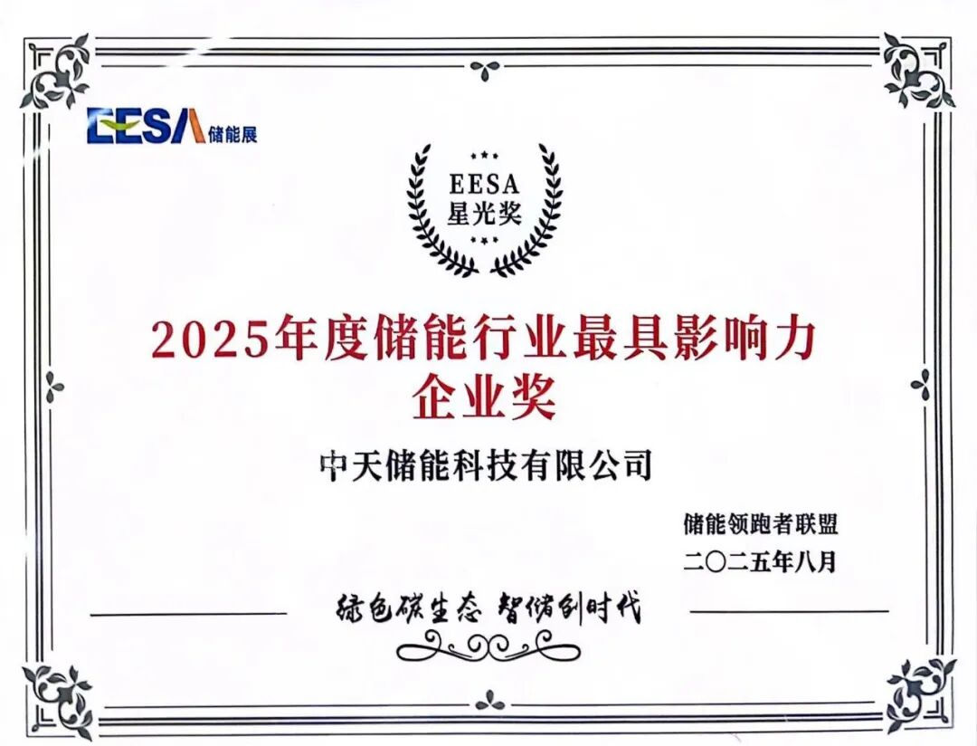 8月13日,第四届EESA储能展在上海国家会展中心拉开帷幕,作为新能源行业领跑者,中天科技新能源携全新一代解决方案亮相4.1H馆41B01展台。在EESA星光奖现场,中天储能凭借在大型储能领域出色的产品力和创造力斩获2025年度储能行业最具影响力企业奖。