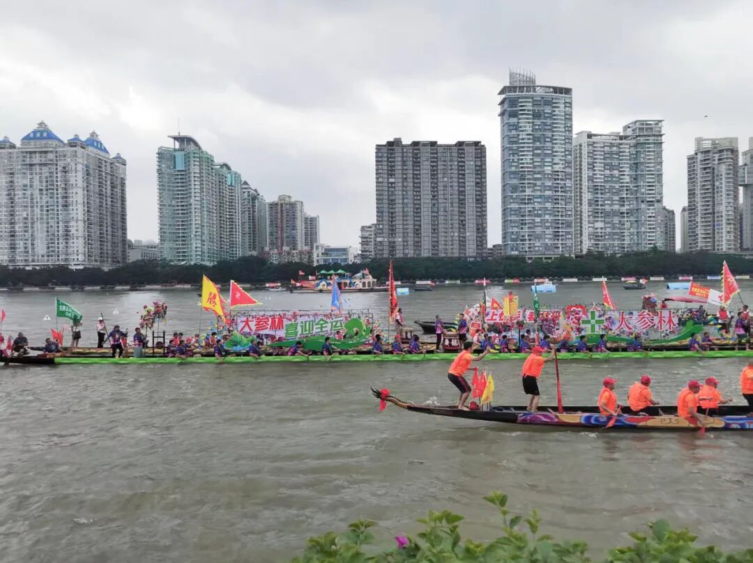 赛龙舟是端午节历史最悠久,文化意蕴最深厚的习俗之一。广东龙舟已成中国文旅的新名片。今年是广东龙舟赛事的40周年,主办方将传统龙舟文化和千年商都、国际友好活力公园有机结合,让传统文化触手可及,为广大市民游客带来粤韵悠长的丰富体验。龙舟赛现场锣鼓喧天,旌旗摇动,广府文化与时尚国潮的碰撞让这场品牌赛事广受好评。