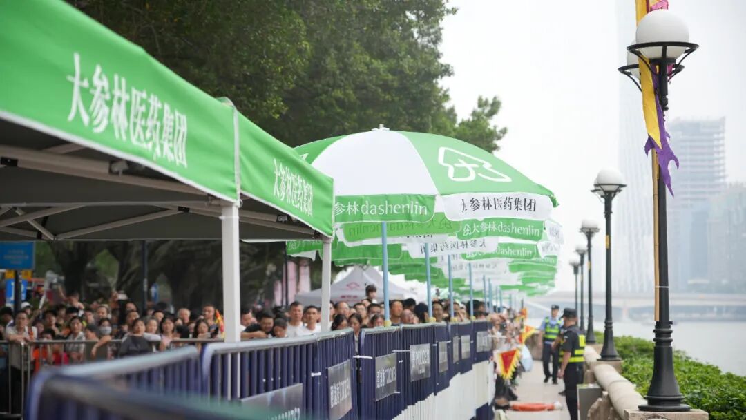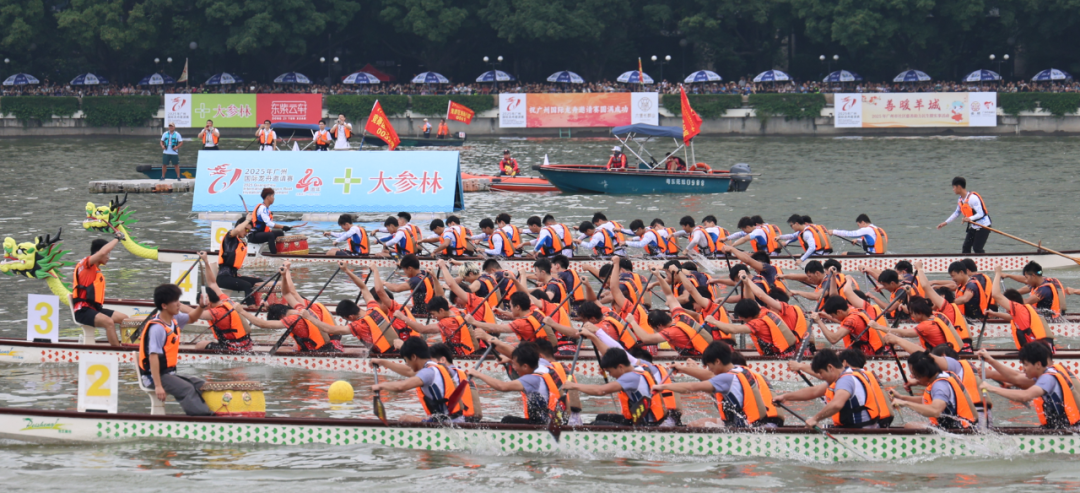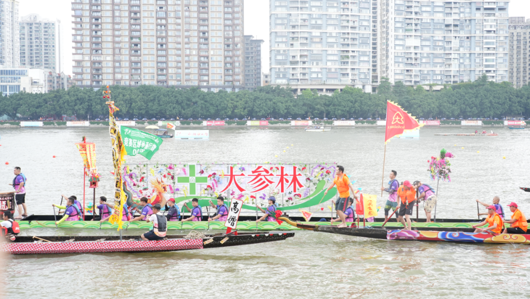 一艘艘色彩斑斓、造型威武的龙舟划破江面平静,龙舟健儿奋楫扬帆,珠江两岸市民的喝彩声震耳欲聋……6月1日,2025年广州国际龙舟邀请赛在中大北门广场至广州大桥之间的珠江河段圆满举行。珠江两岸吸引了超10万人次市民游客驻足观看。大参林作为广东本土企业,今年已是第4年参与到这项传统赛事当中,助力传承广东龙舟文化,讲好广东故事。