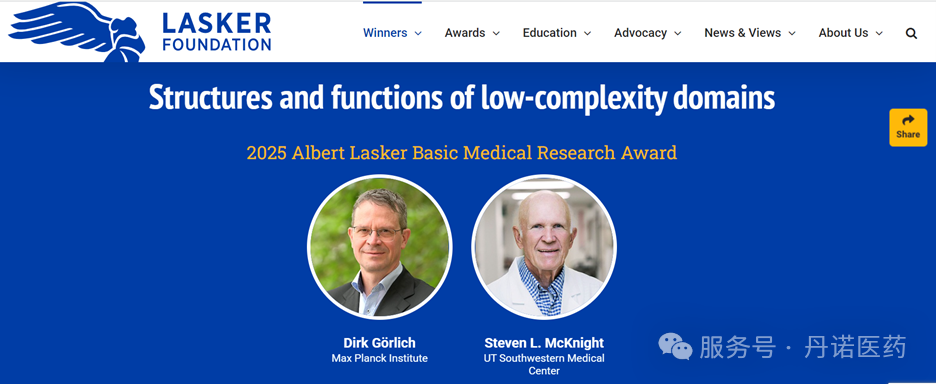 丹诺医药科学顾问、原始股东Steven McKnight博士获2025年拉斯克基础医学奖