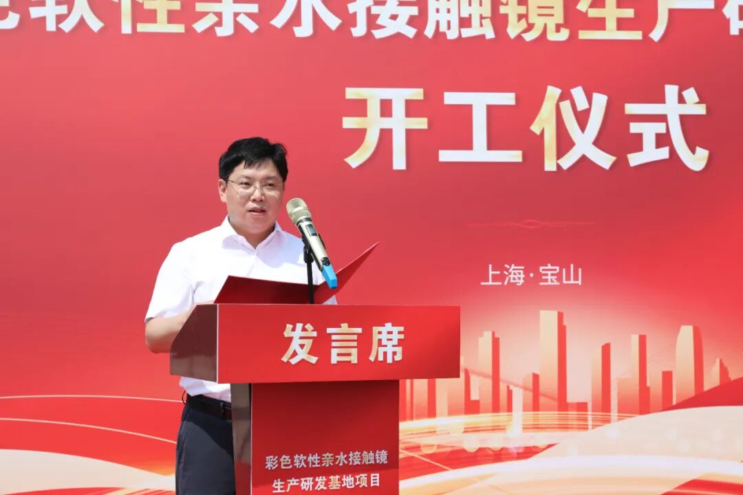 顾村镇镇长许志康代表顾村镇作发言,他表示,上海蒂螺维珍彩色软性亲水接触镜生产研发基地项目的落地,不仅标志着顾村镇招商引资工作取得重大突破,更将为顾村科创转型和区域经济发展提供有力支撑。顾村镇将以“金牌店小二”的服务标准,全程跟进项目建设,及时解决各类问题,为企业发展提供最优服务、最强保障。