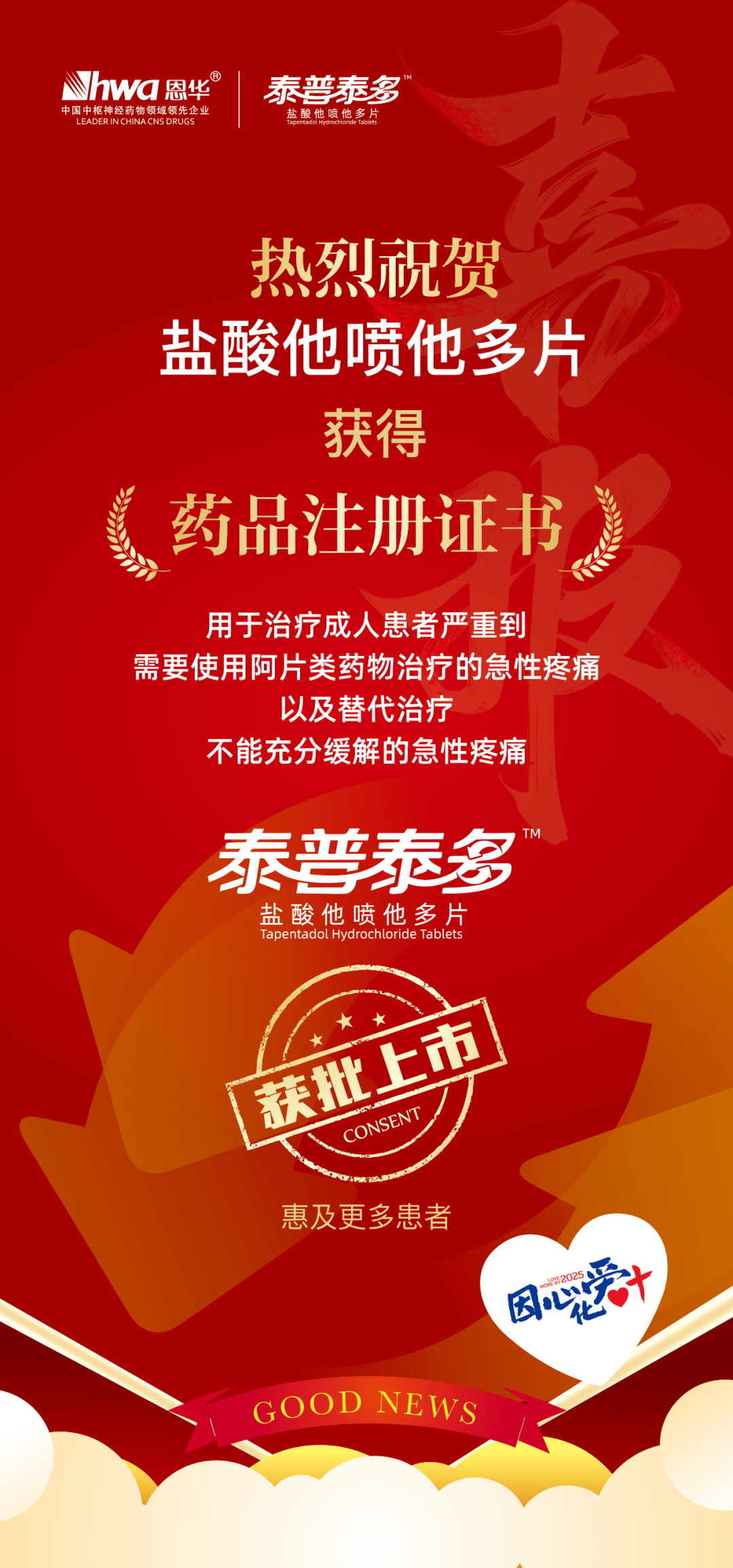 喜报 | 恩华药业盐酸他喷他多片获得《药品注册证书》