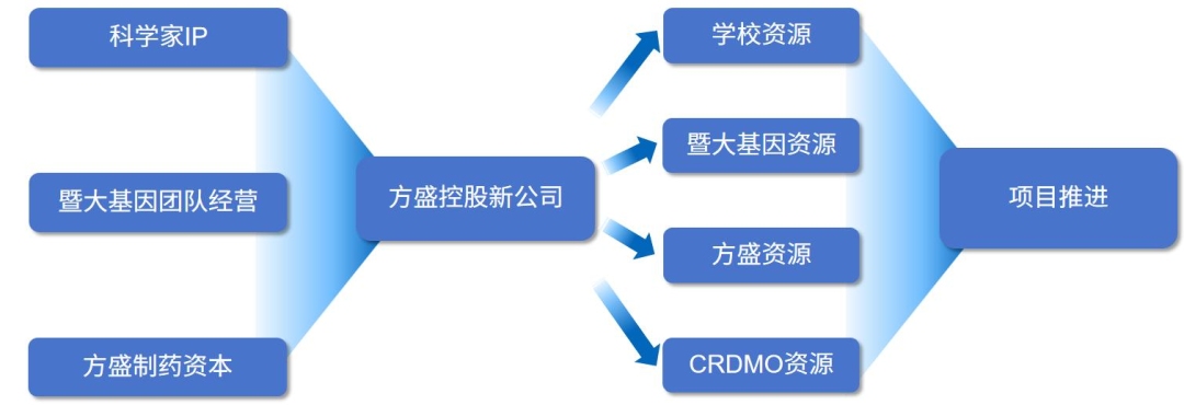 在业务聚焦上,暨大基因精准锁定传统大小分子,偶联药物,细胞与基因治疗等创新药领域,充分发挥其在科研技术方面的深厚积累与强大实力,大力推进科研技术成果转化。通过整合方盛制药自身现有的技术储备以及暨大基因的优质资源优势,构建了一套涵盖项目拓展、立项研发、产业转化等环节的完整商业模式。