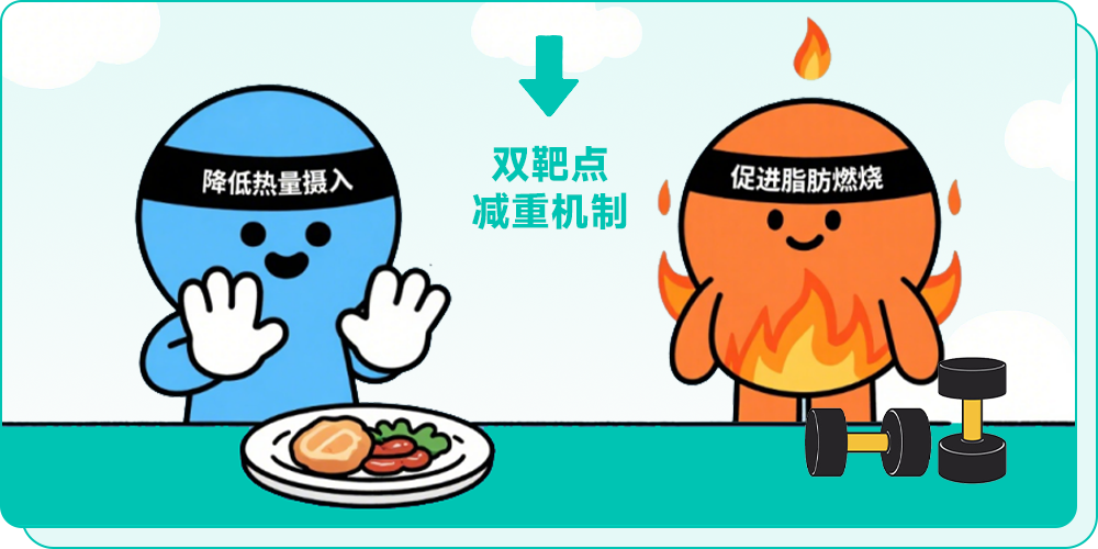它不搞单靶点药的 “单打独斗”,激活双靶点自带 “抑制食欲 + 加速燃脂” 双 buff,轻松破局~