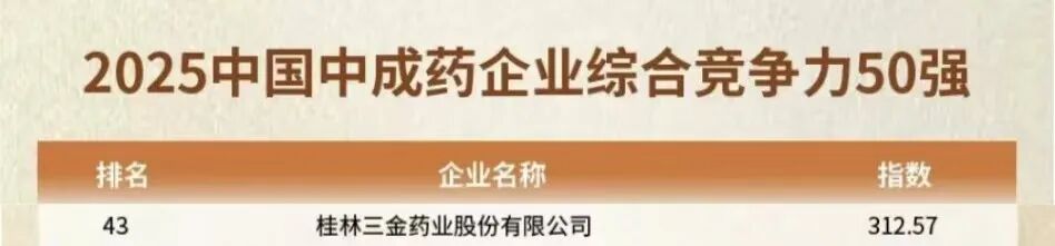 喜讯!桂林三金荣登中成药工业综合竞争力50强!旗下两品牌荣获“2025年西普金奖”