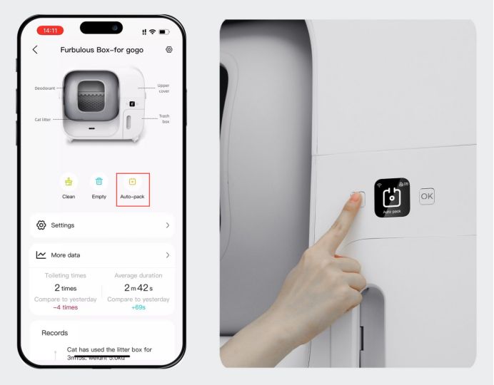 此外,这款猫砂盆拥有智能交互功能,可与手机APP连接,自动清理、预约清洁、重置猫砂等功能,一键解决大多数养宠人士铲屎烦恼,个性化模式调节,满足用户多样化需求。