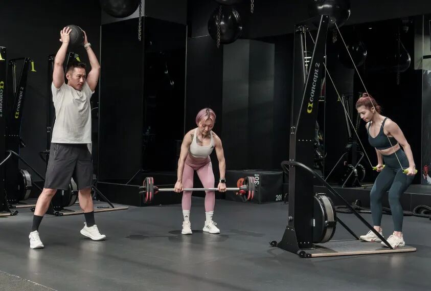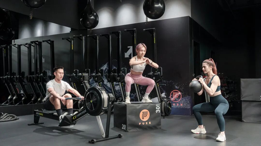 课程中会用到各种好玩的健身器械,比如滑雪机、划船机、风阻单车、战绳、跳箱、壶铃、弹力带等等,整堂课被分成8个环节,搭配动感音乐、教练引导和现场氛围,不仅让你练得有效,还能玩得开心。