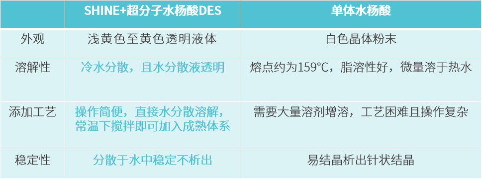 SHINE+超分子水杨酸DES VS 单体水杨酸