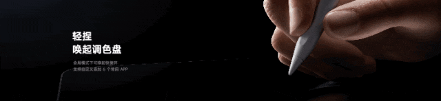 同时,升级支持压感触控。双击可以切换笔刷和橡皮,调整笔刷参数;上下滑动,可以调整笔刷粗细;还能用来刷短视频、当 PPT 翻页器;轻捏,可以唤起调色盘,还能用来自定义 APP 快捷启动。这些丰富的操控手势,不只系统应用,还专门适配了大家常用的绘画、笔记应用。
