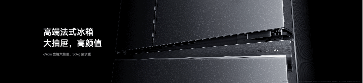 米家冰箱Pro 微冰鲜 法式560L 是小米目前最高端的法式冰箱,配备了高端的法式大抽屉,69cm 的超宽幅大抽屉可以实现整放羊腿,实用性特别强。