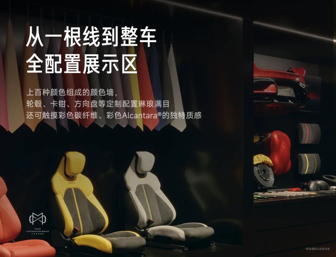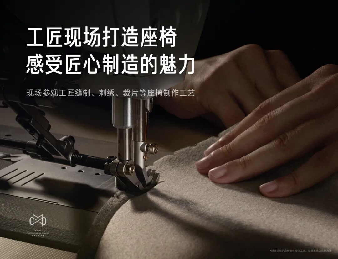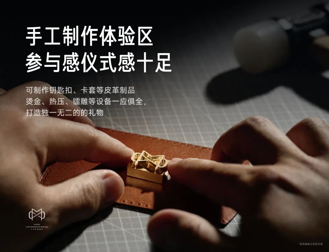 我们在小米汽车北京超级工厂店建立了一家小米定制服务中心,大家可以亲眼看到、亲手摸到定制配置,我们的工匠会在现场缝制座椅面套。你还可以在手工体验区,现场制作独一无二的皮具用品。希望大家能喜欢。