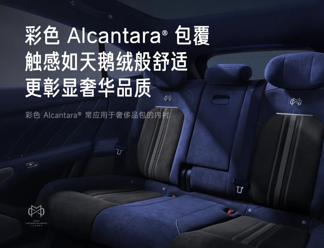 小米定制服务还将带来两款定制的内饰。首先是龙胆蓝,黑蓝双色。最特别的是蓝色的 Alcantara®, 包裹着座椅,像天鹅绒的质感。真木饰板,是甄选的欧洲白蜡木,每一片都有独一无二的山水纹。