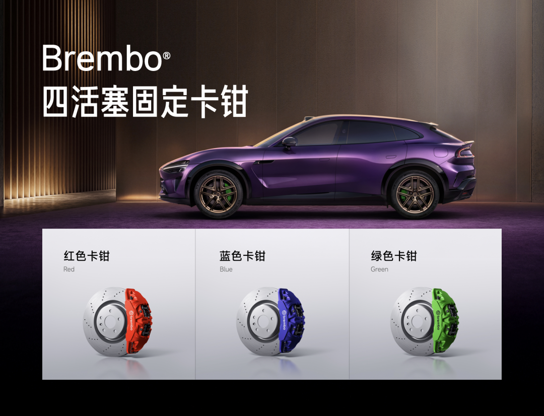 我们还新增了 21 英寸的五辐双层锻造轮毂,这个轮毂用 20 多把刀头铣削,铣削加工耗费将近 11 个小时,非常精致,一共有 4 种颜色可选,分别为琥珀金、月岩银、镜面银、碳黑。卡钳也有 3 款颜色可选,分别是红色、蓝色、绿色。车标新增了两款 24K 金白陶瓷车标与 24K 金黑陶瓷车标,一共有 4 款可选。