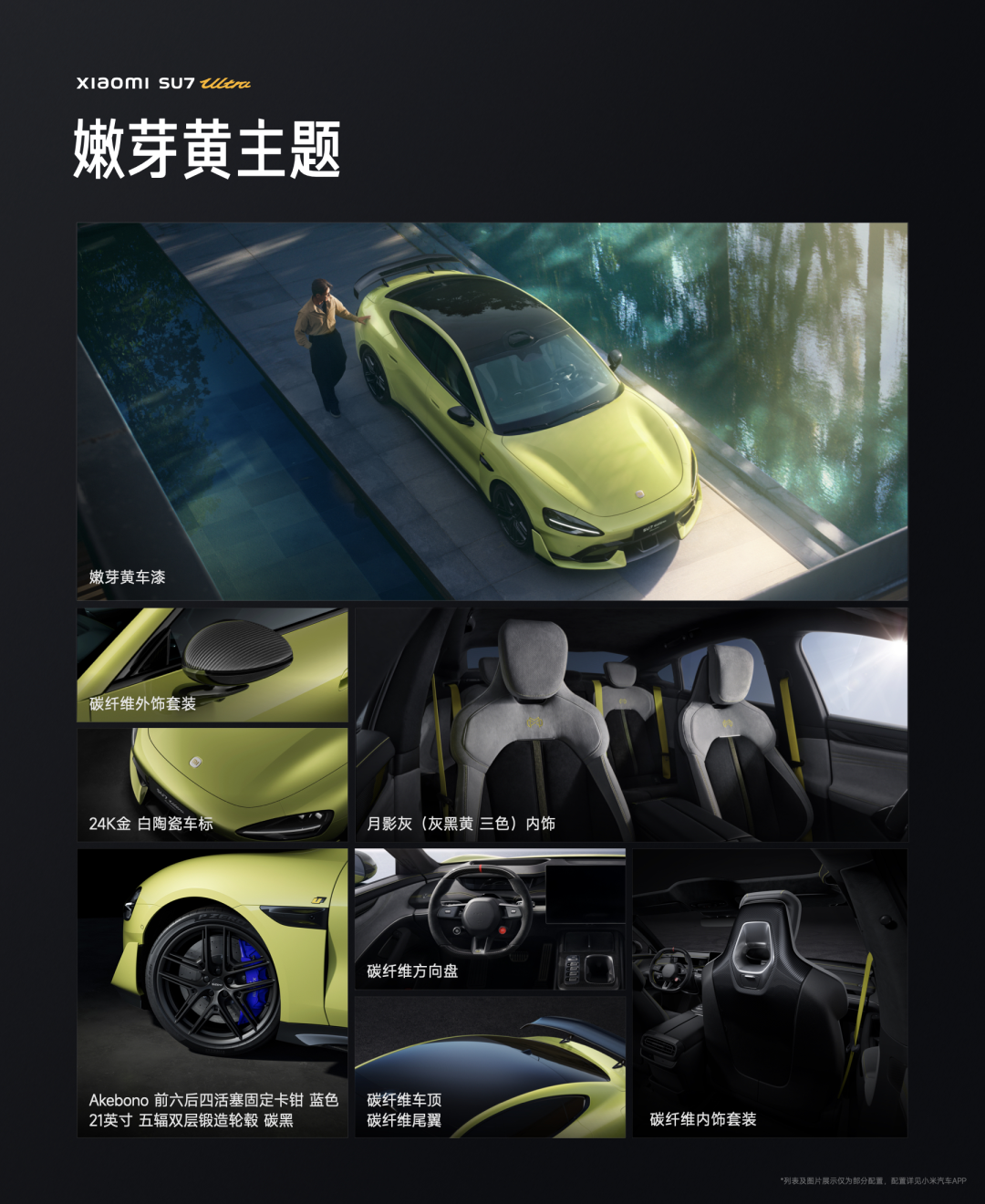 最后一款为嫩芽黄,非常有个性,是一个高饱和度的跑车色,象征着新生、希望与生命力,像春天刚刚萌发的嫩芽。
