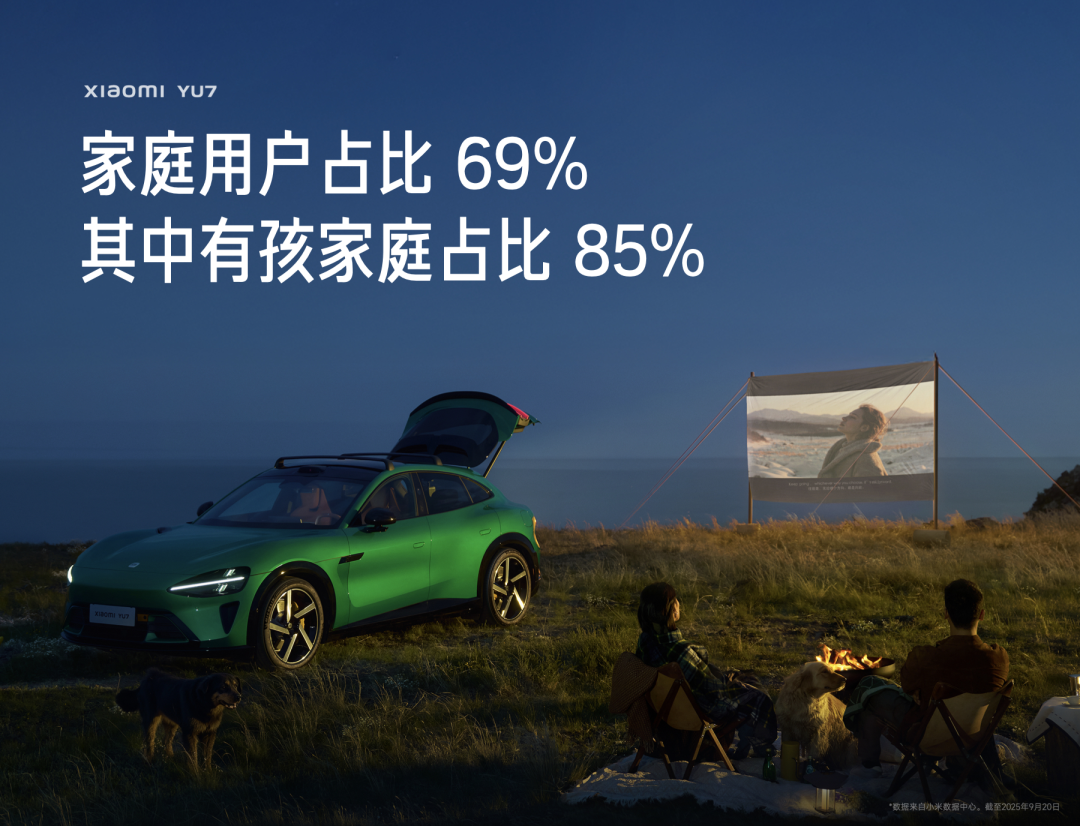 第二是空间,分享一组车主数据:小米YU7 家庭用户占比 69%,有小朋友的家庭占比 85%,小米YU7 能充分满足家庭用户的需求。而且后排座椅很舒服,还有后排屏可以看动画片,所以非常受小朋友的喜欢。