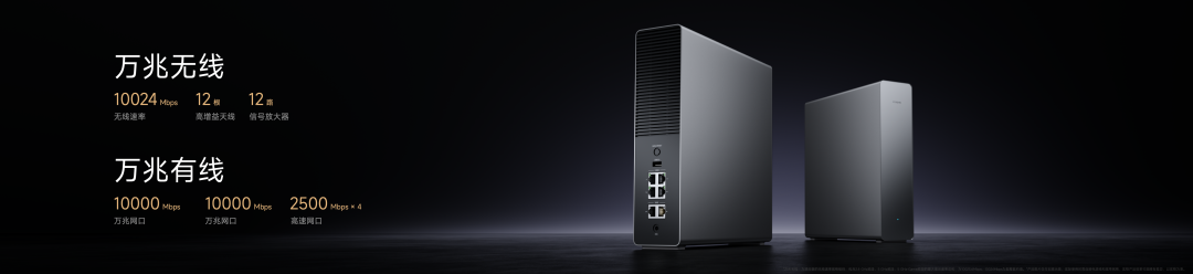 这台高端路由器,核心性能非常强,拥有三频万兆无线、双 10GE 网口的万兆有线,可以轻松满足全家多设备用网、大文件传输、小型办公等需求。
