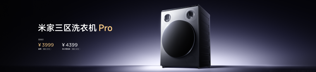 米家三区洗衣机Pro 目前提供 2 个版本可选,北方用户可以直接选三洗版,首销价 3999 元;想要进一步解放双手,可以选择双小筒洗烘的版本,首销价 4399 元。