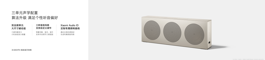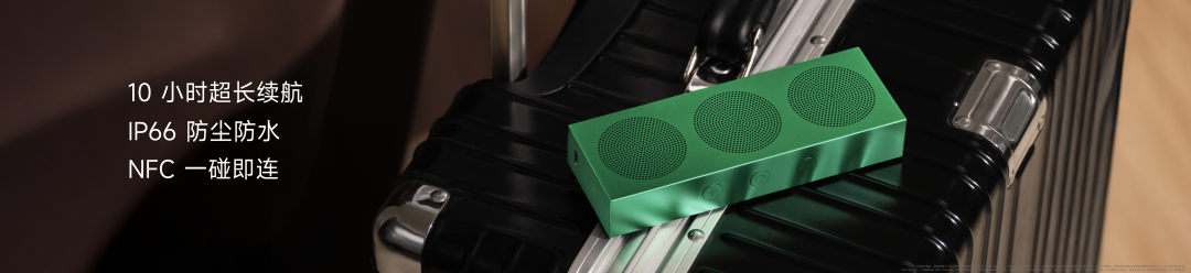 还有一款家族式设计的 Xiaomi 随身蓝牙音箱,它是一体式金属机身,非常精致,握在手里刚刚好。一共有 6 款时尚靓丽的配色:钛金属色、晴山蓝、日暮粉、晚霞紫、宝石绿、曜石黑。其中绿色、黑色采用了小米汽车的同款热门配色,非常推荐车主朋友们购买。