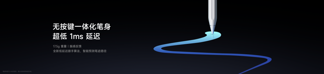 这一代同样配备了 PC 级悬浮键盘,PC 级的按键、触控板,0° - 124° 无级调节开合角度。还有小米焦点触控笔 Pro,一体化的笔身,没有按键,极其简洁。17.5g 的重量,还做到了 1ms 超低延迟,和真实书写体验非常接近。