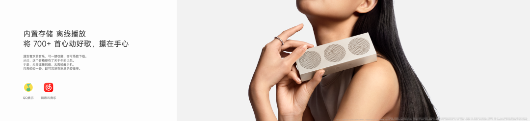 声学上采用了三单元声学配置,双全频单元、大尺寸被动盆,音质很不错,还支持多种调音模式。还有一个非常实用的功能:使用 “QQ 音乐” 和 “网易云音乐” 两大主流软件,能边听边存。内置 4GB 存储,大约可存 700 多首歌。不连接手机,也能听你喜欢的歌。配合 10 小时超长续航、IP66 级防尘防水,不管是室内桌搭,还是室外徒步、露营,它都是个很好的音乐搭子。