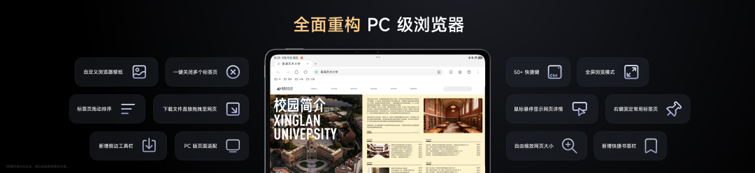 还有一个重要升级:全面重构 PC 级浏览器。从界面、操控到显示,都和 PC 浏览器一样。以前学生朋友们用校园网,偶尔出现页面拉伸、部分功能无法使用的情况。现在已经完全解决。