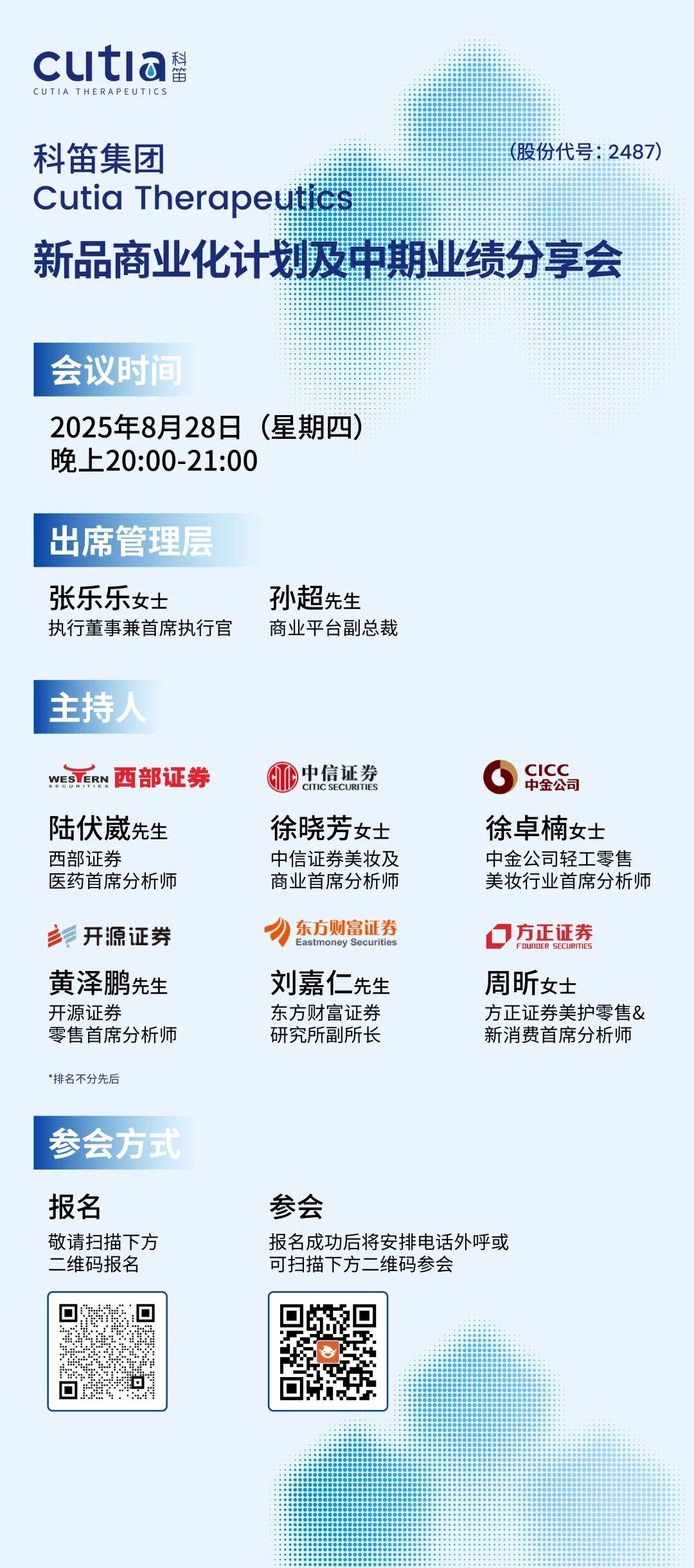 邀请函 | 科笛集团新品商业化计划及中期业绩分享会