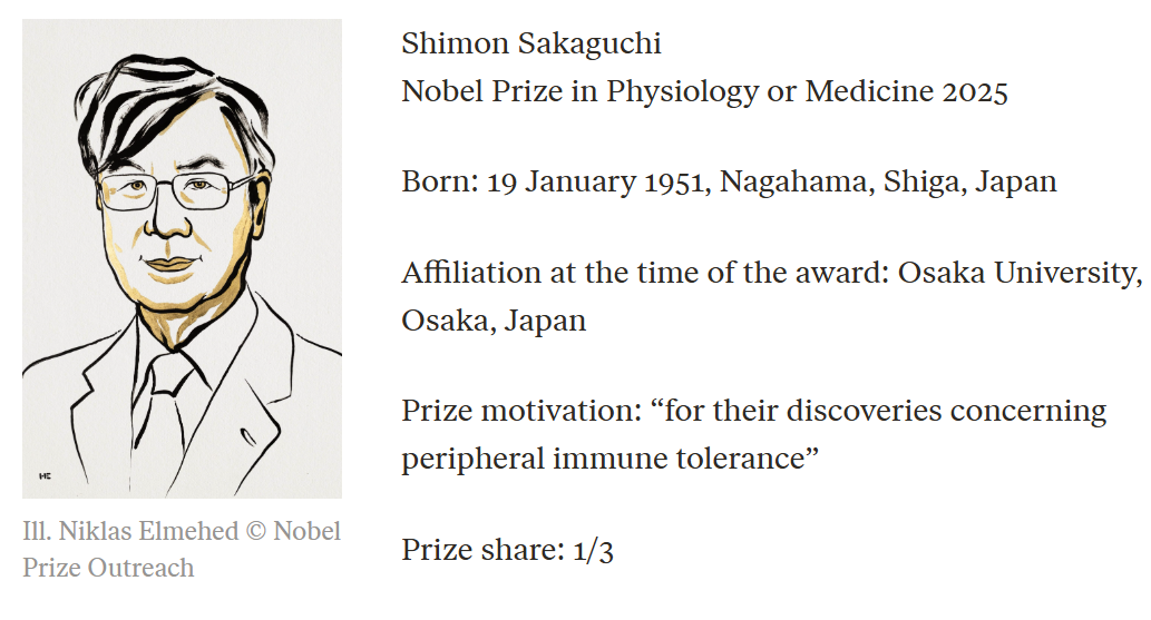 重磅揭晓!2025年诺贝尔生理学或医学奖:免疫系统的“和平警察”正式登场