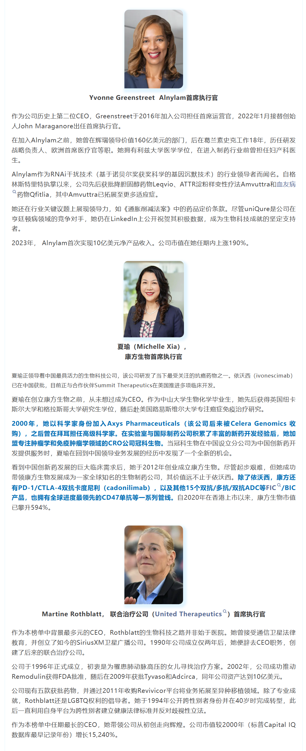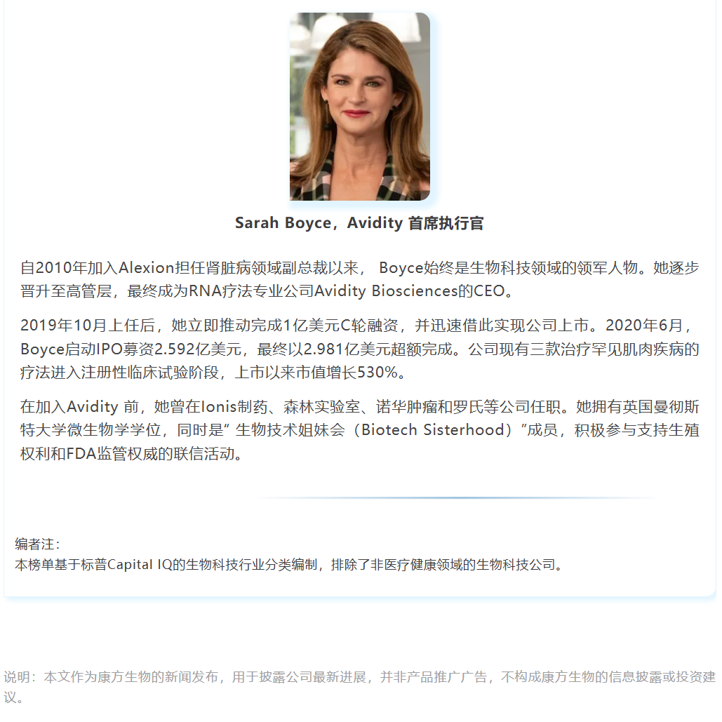 BioSpace此次突破了传统评选对跨国制药巨头的关注视角,特别选取了全球最具价值的五家生物制药公司的女性领导者,以回顾她们带领公司在引领全球创新药发展浪潮中取得的卓越成就。