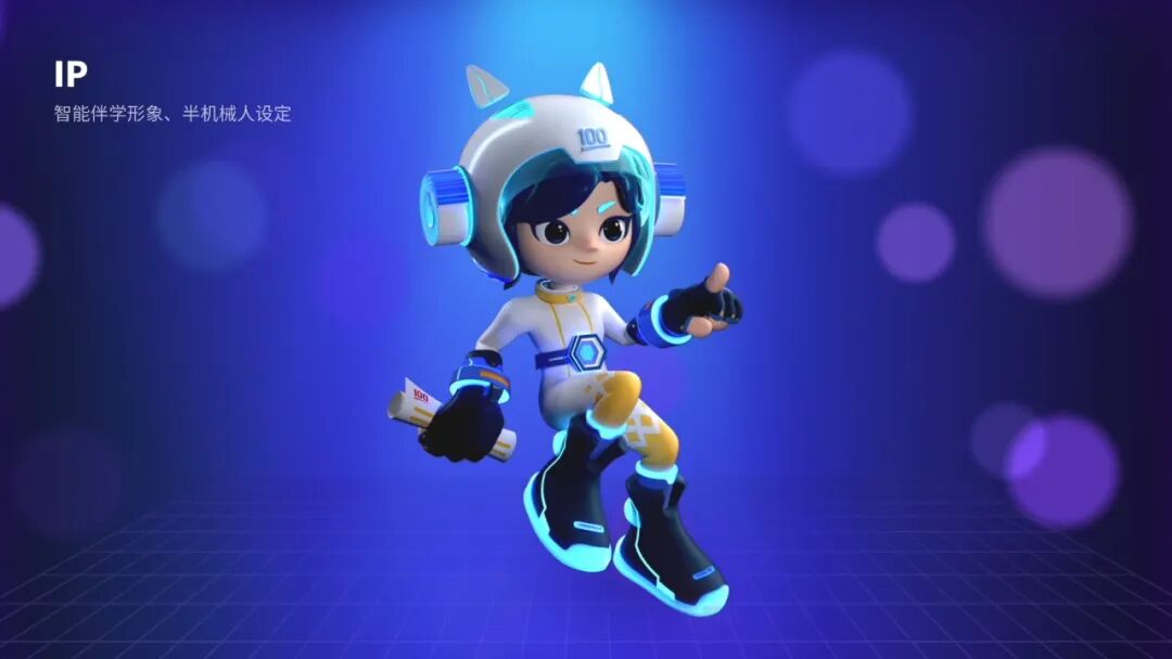 IP植入:通过构建人形亲和力强的「小帮学姐」IP 形象,头戴作业帮百分标识且科技感十足的头盔配饰,贯穿各个场景进行陪伴学习,让用户感到温暖和有信任感。