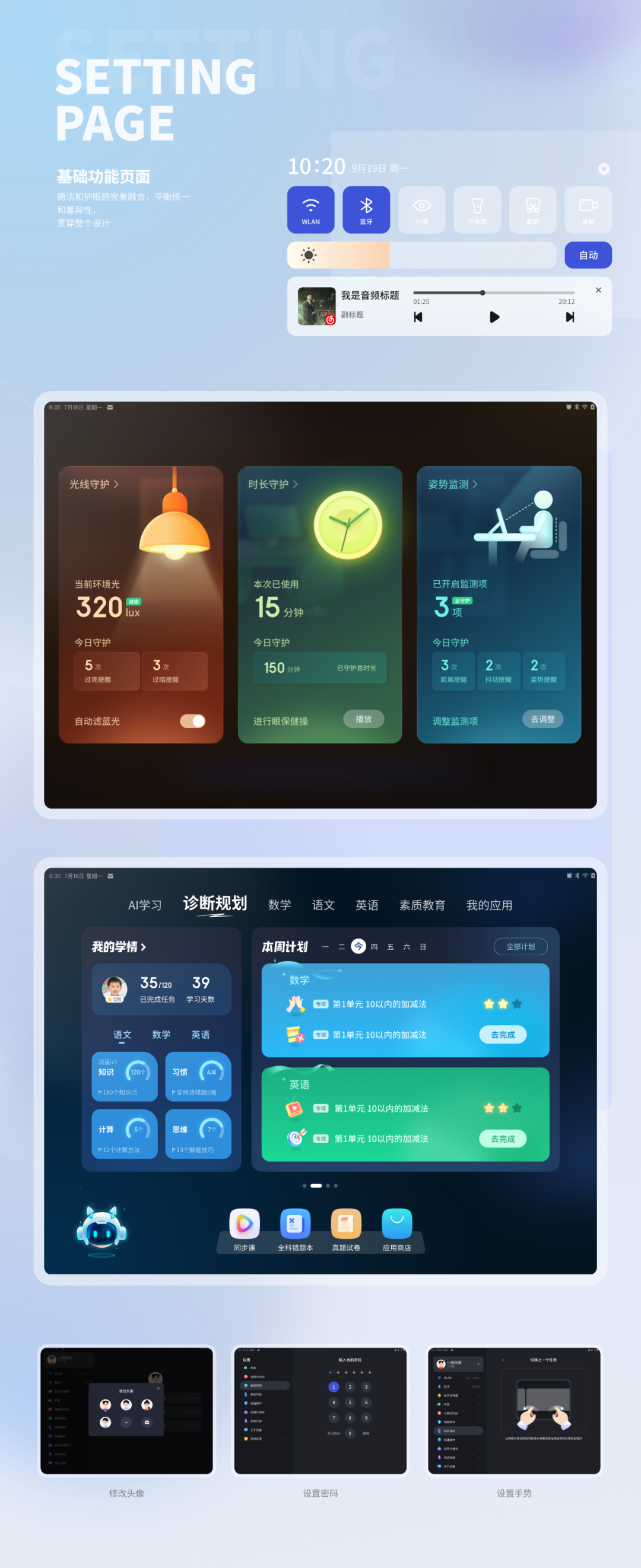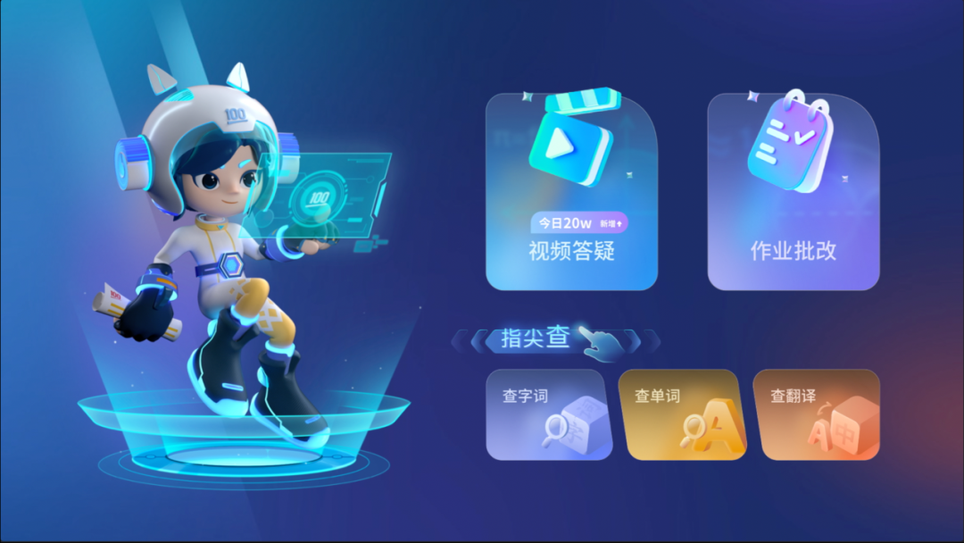 效果:轻松透气而有能量感的科技感构建,帮助用户能够在第一眼感知智能学习平板的「科技」属性。