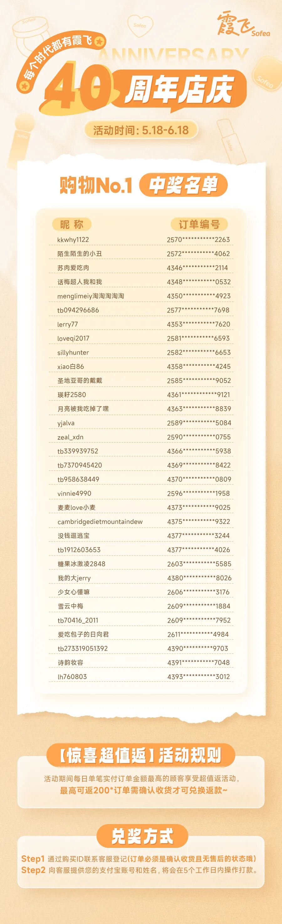 40周年!购物No.1中奖名单来咯!
