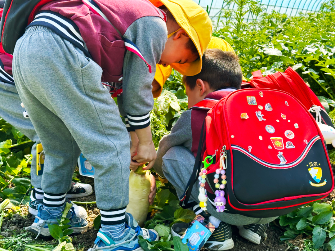 在实践中,孩子们不仅直观感受到阳光的馈赠、水分的滋养、时间的沉淀如何让种子破土而出,更通过触摸土壤的温度、记录生长变化,深刻理解每种作物都有自己的生命节奏。当他们看到农民伯伯弯腰耕作的身影与精心设计的灌溉系统,突然明白土地里不仅生长着蔬菜,更凝结着世代传承的生存智慧。这些鲜活的认知在孩子们心中埋下了一颗尊重自然、珍惜食物的种子,让课堂延伸出更深远的生命教育意义。